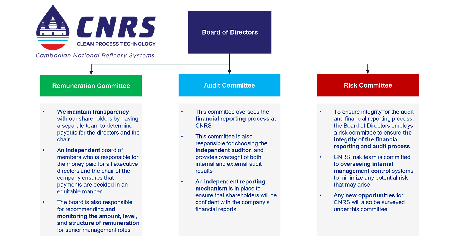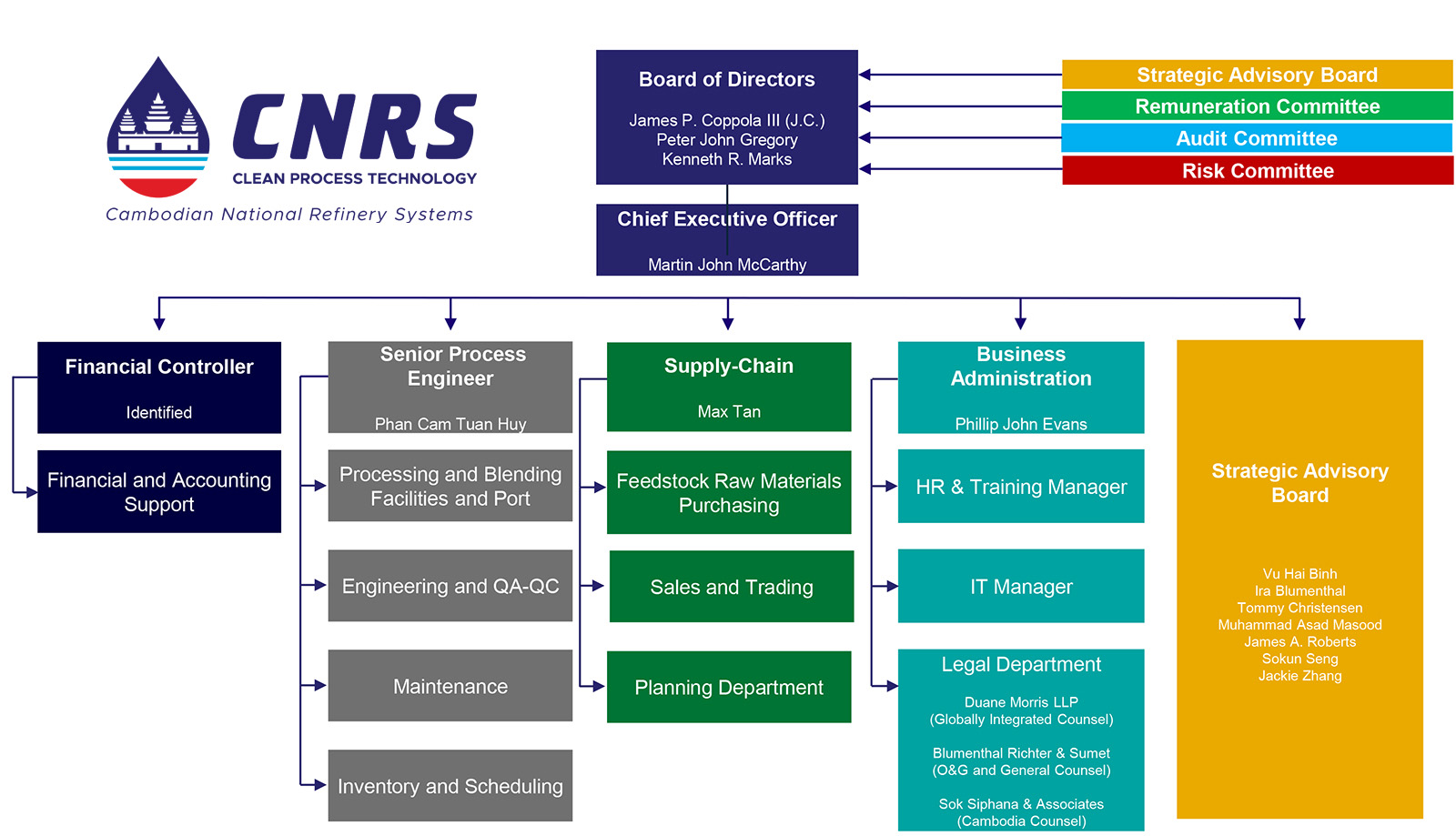 The senior operating team at CNRS is responsible for executing the long-term strategic plan, stewarding the day-to-day operations, maintenance, laboratory, and project work for the refinery, bottling plant, and the storage tank facility, keeping CNRS in compliance with local regulations and international standards, while driving growth and maximizing shareholder wealth.